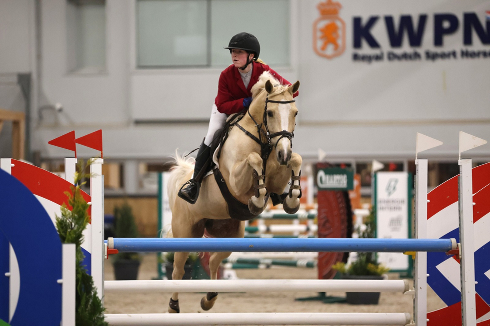 Het brons van deze klasse ging naar Roxan Coenen met de 11-jarige FEI-pony Ovidius van de Beekerheide (Oscar van de Beekerheide x Neptune van de Beekerheide x Carl, NRPS Quinty merrielijn). Ook zij kregen één fout in de barrage.